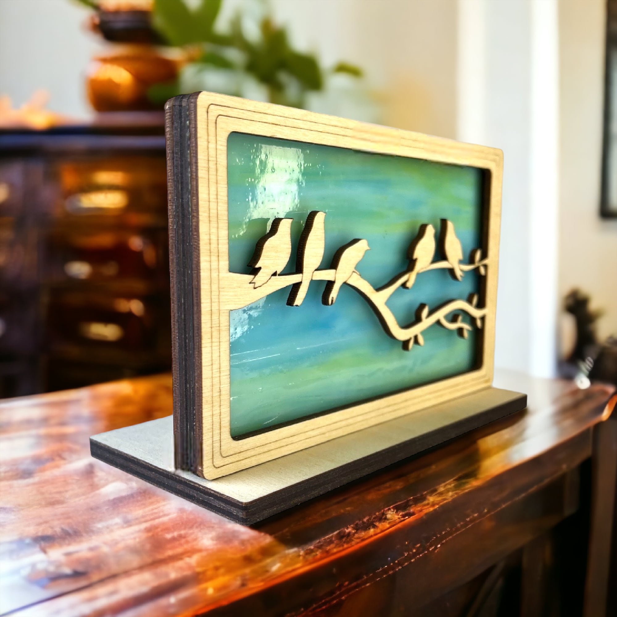 This fun Birds of a Feather SunScreen captures a vibrant little flock doing what they do best: chatting, perching, and surveying the scene. Display this piece to bring a whimsical and lively snapshot of nature into your home.