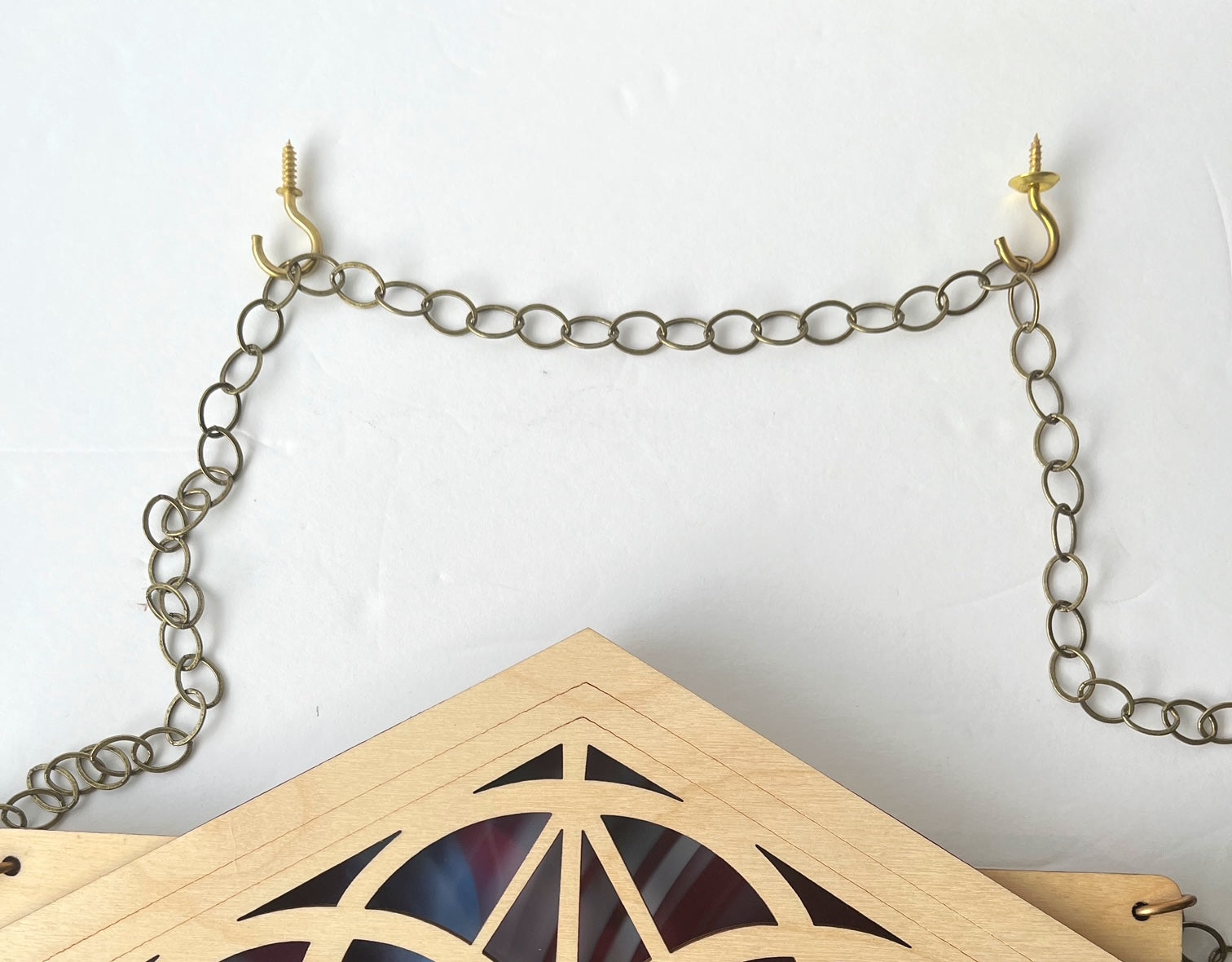 We recommend using two (2) cup hooks spaced at least 6” apart to hang the "Grand" size suncatcher. This prevents the piece from turning and distributes weight securely.