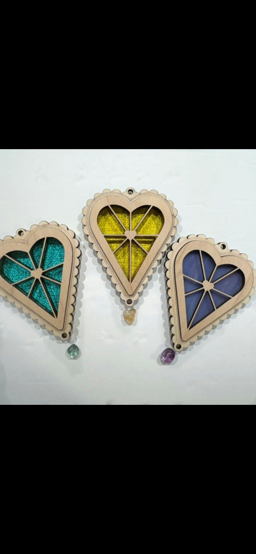 Our Heart Strings Suncatcher is a beautiful way to "spread the love" and brighten any space. Crafted with care, this unique ornament features a vibrant radial sunburst design in the center, layered over colorful stained glass.