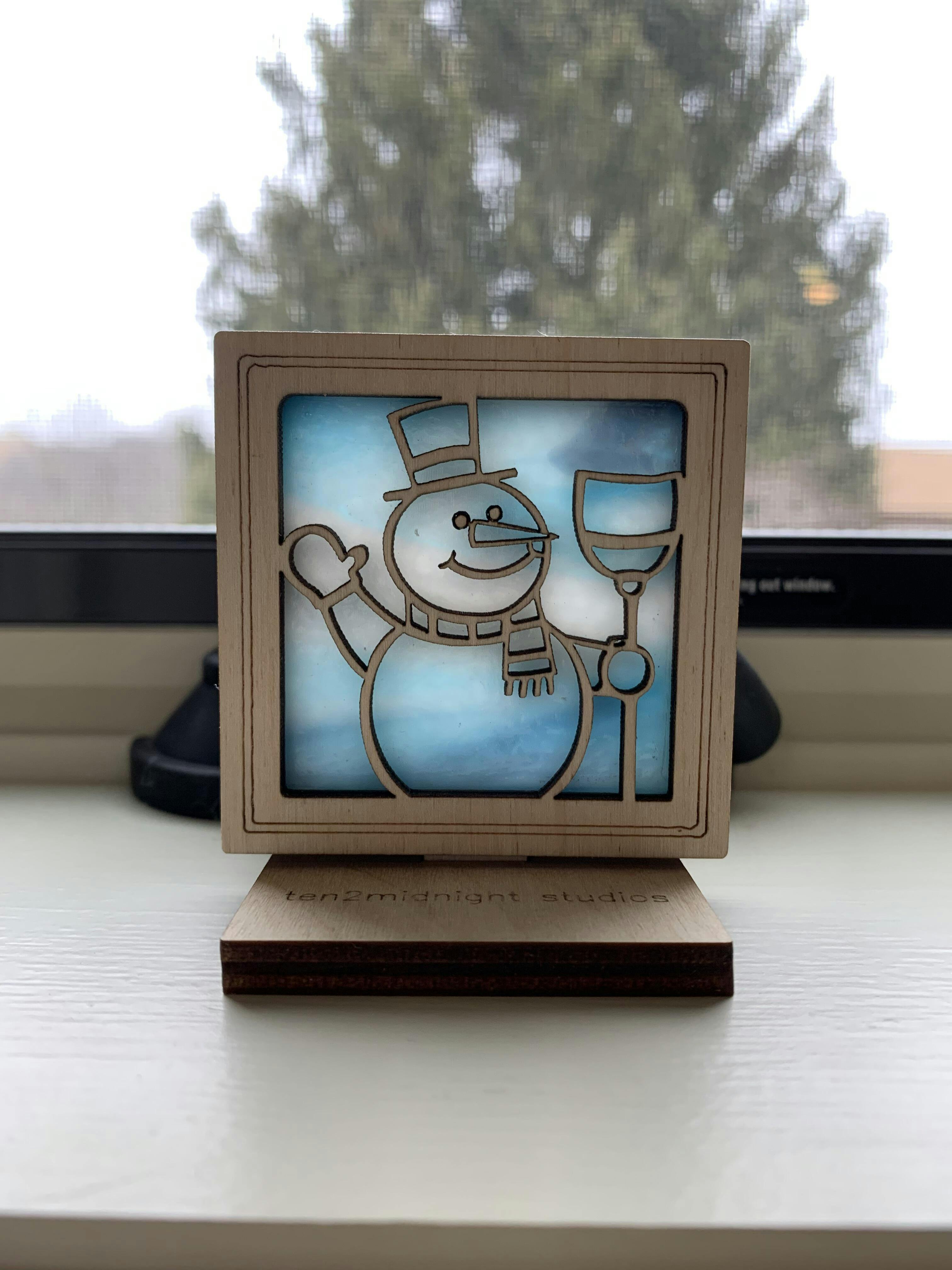 SNOWMAN MINI SUNCATCHER - 2.5" stained glass & wood ornament